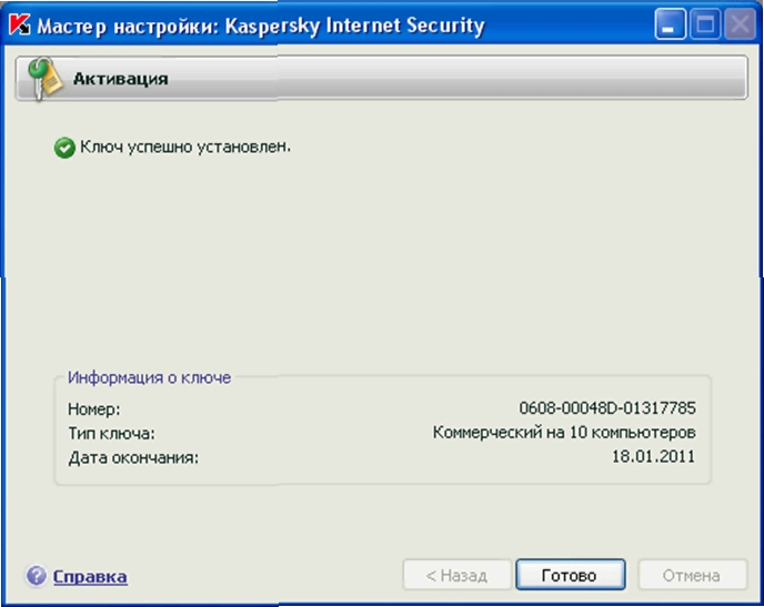 1. Если ключ подошел то появится окошко показанное ниже.
